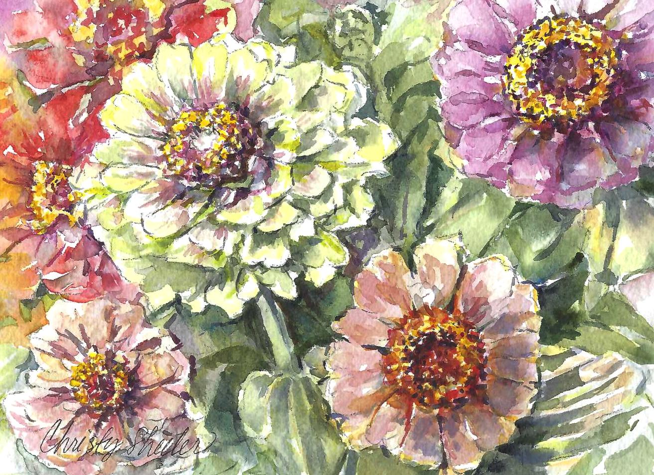 Remembering how grandma had so many rows of flowers in her garden, I look forward to planting zinnias each spring. Such a cheery flower and the colors so bright like candies, the palette combinations are playful and fun. Each year, I realize that I didn't plant nearly enough flowers!