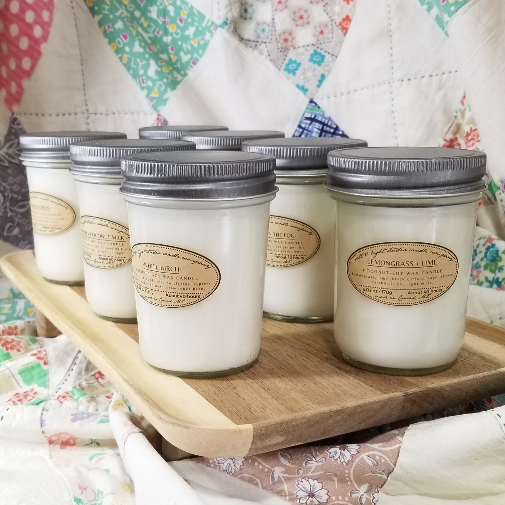 I hand pour these candles in small batches here in my Salt and Light Studio in Conrad MT.
