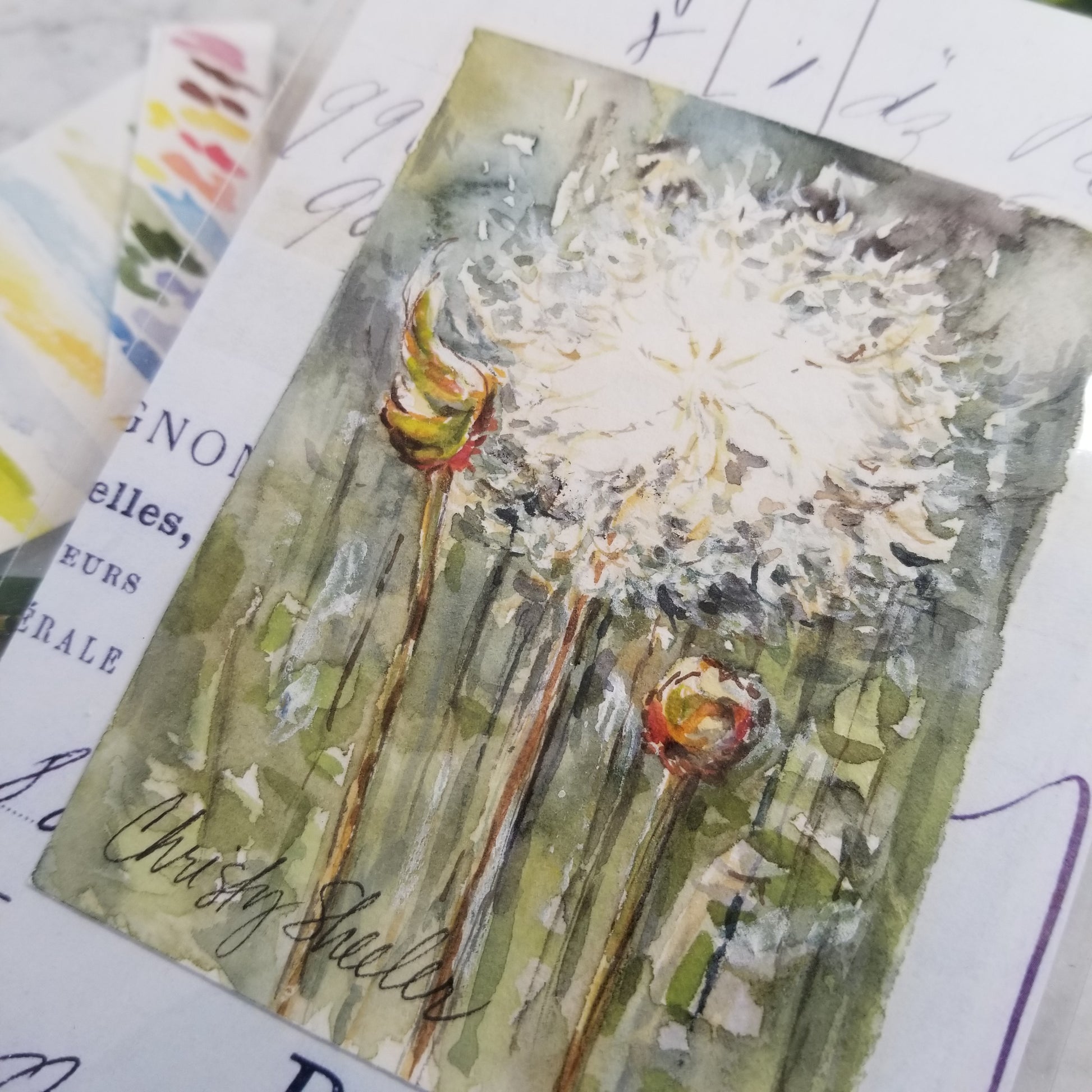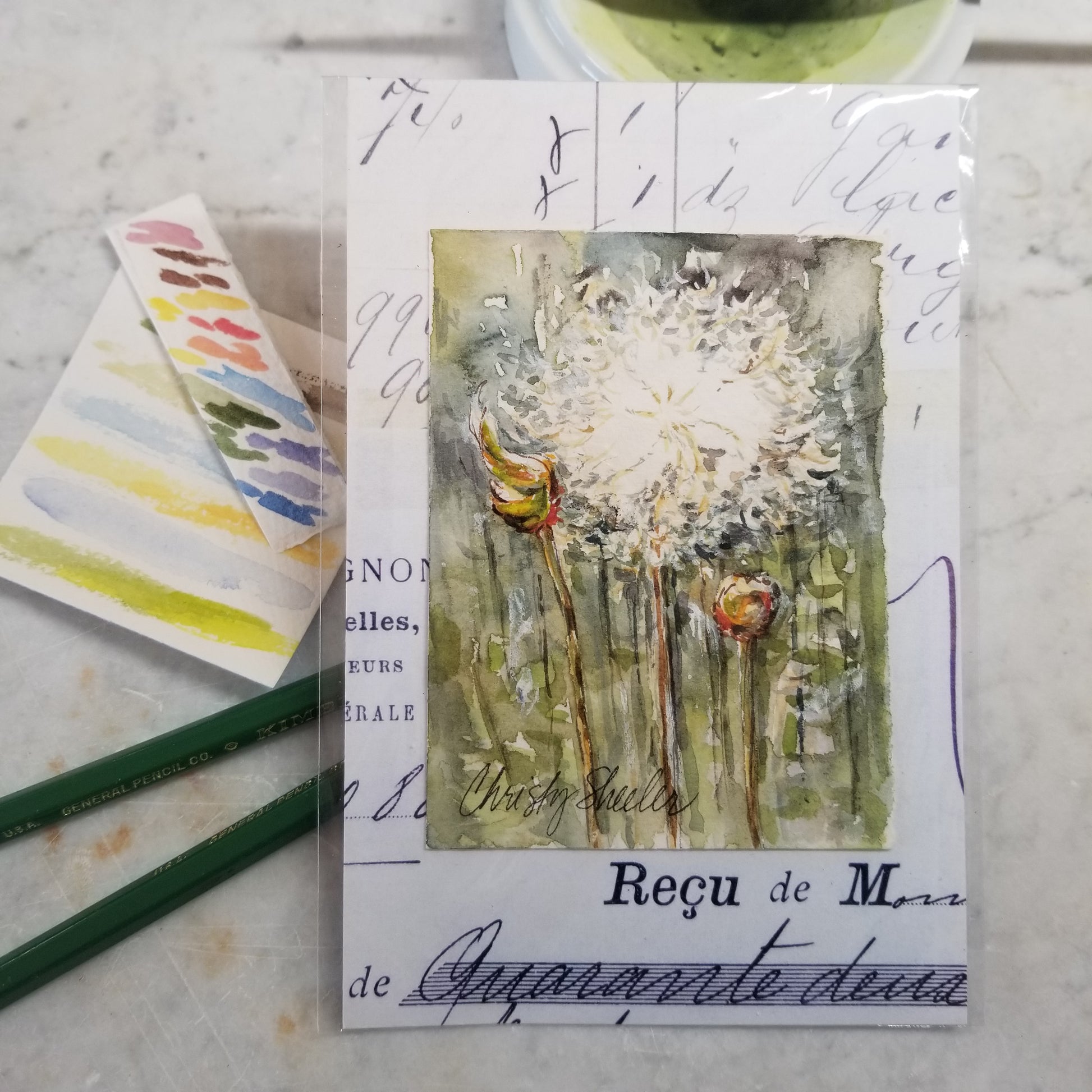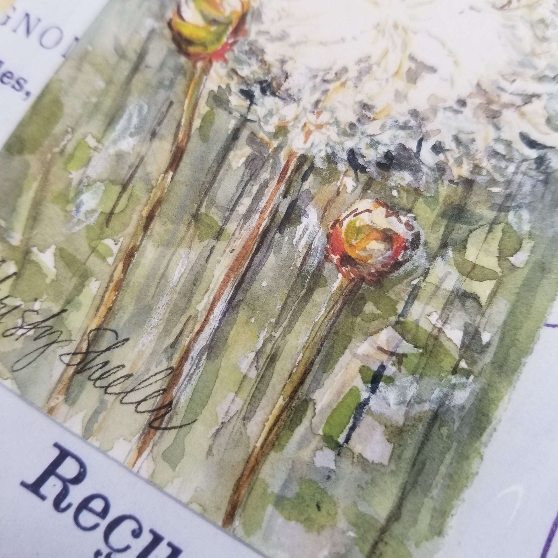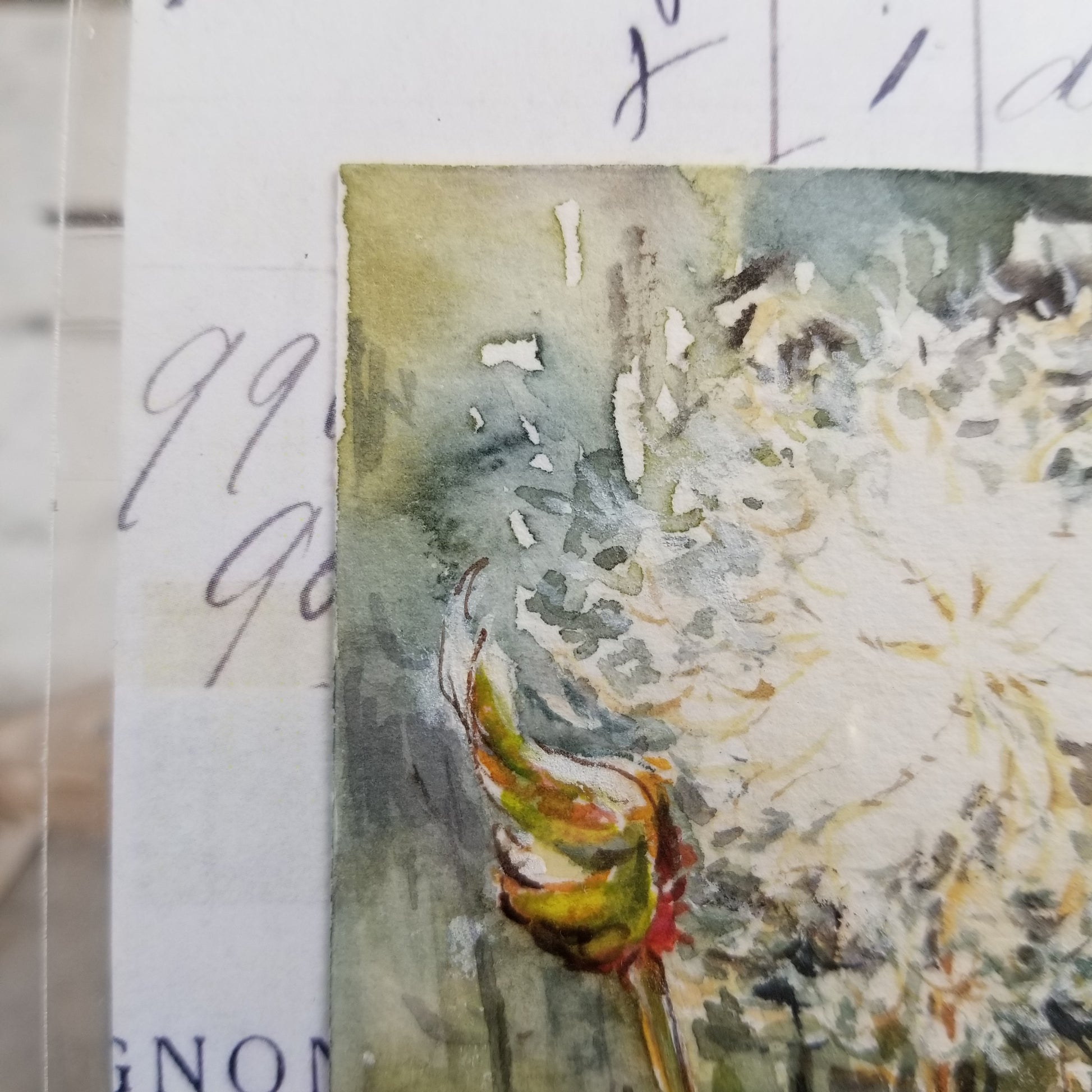 Watercolor painted wildflower, the cotton grass, is soft and airy in wispy delicate nature. Mounted on acid-free backing for quick addition to a 4" x 6" frame.