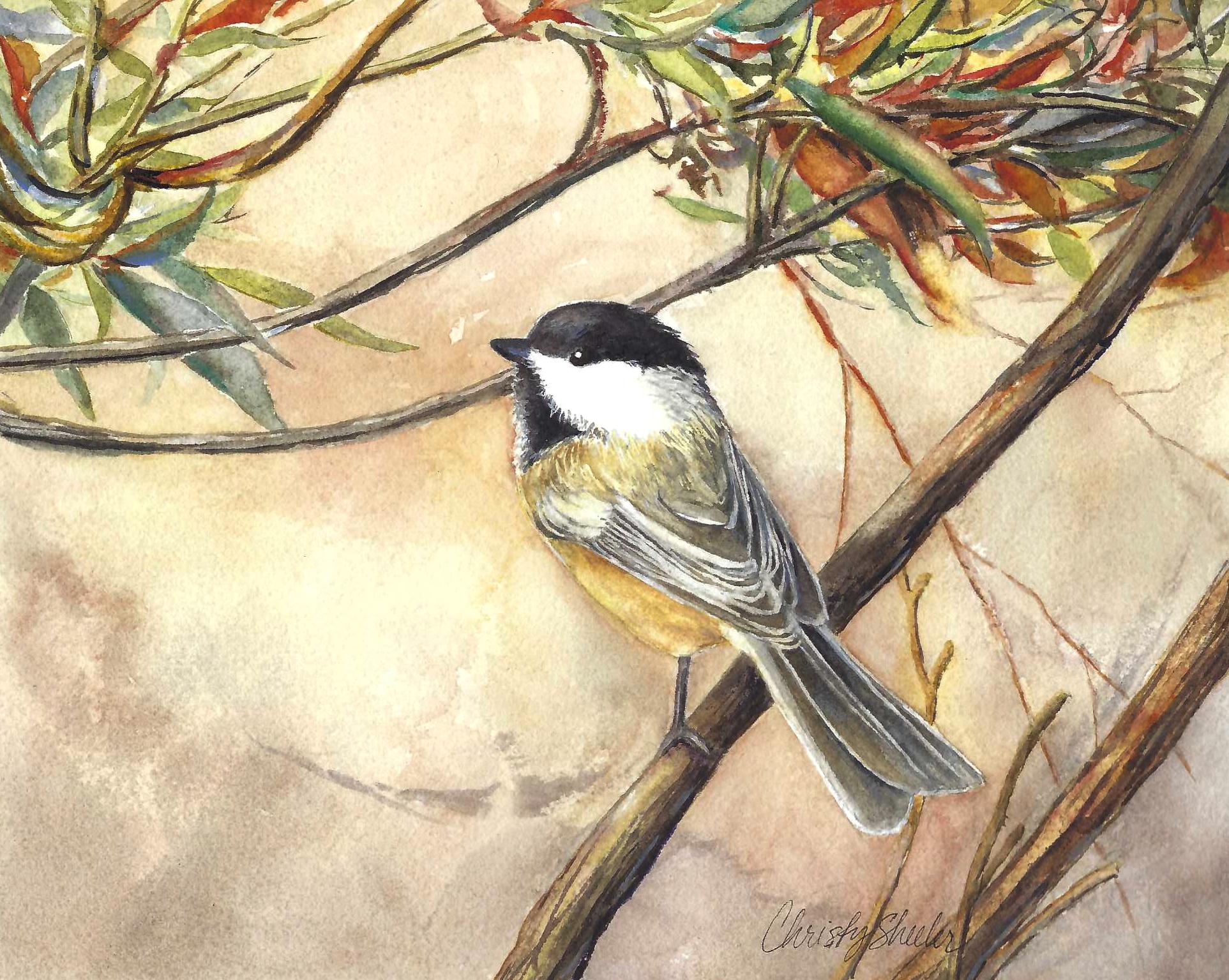 Under shelter of leaves, a chickadee perches and sings its song clear and crisp. Something about the activity of birds as they go about their day, singing and flitting about; take a moment and listen to their tune. They don't seem to have a care yet they are cared for just the same.