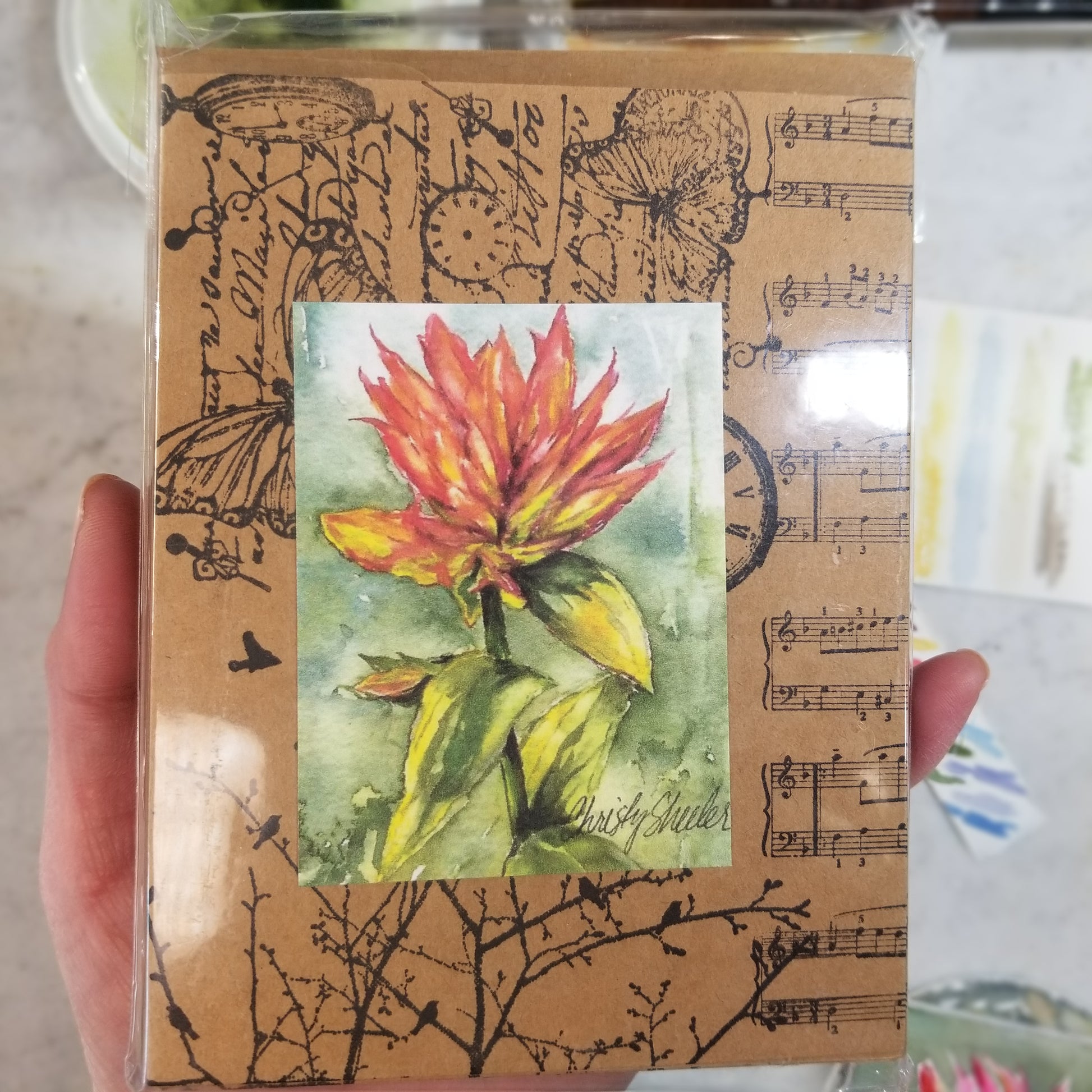 A lovely bundle of wildflower beauties! Six pieces of wildflower goodness to enjoy. Three watercolor hand painted 3" magnets with Indian paintbrush, pasque flower (crocus) and bear grass. Magnets are sealed with cold wax for protection of artwork. One bookmark with watercolor bear grass and another with painted swatches of watercolor from my paint sessions. Bookmarks are stamped on back with inspirational scriptures. One set of eight different notecards with mini prints of my watercolor wildflowers artwork. Preview of notecards included on back of package.