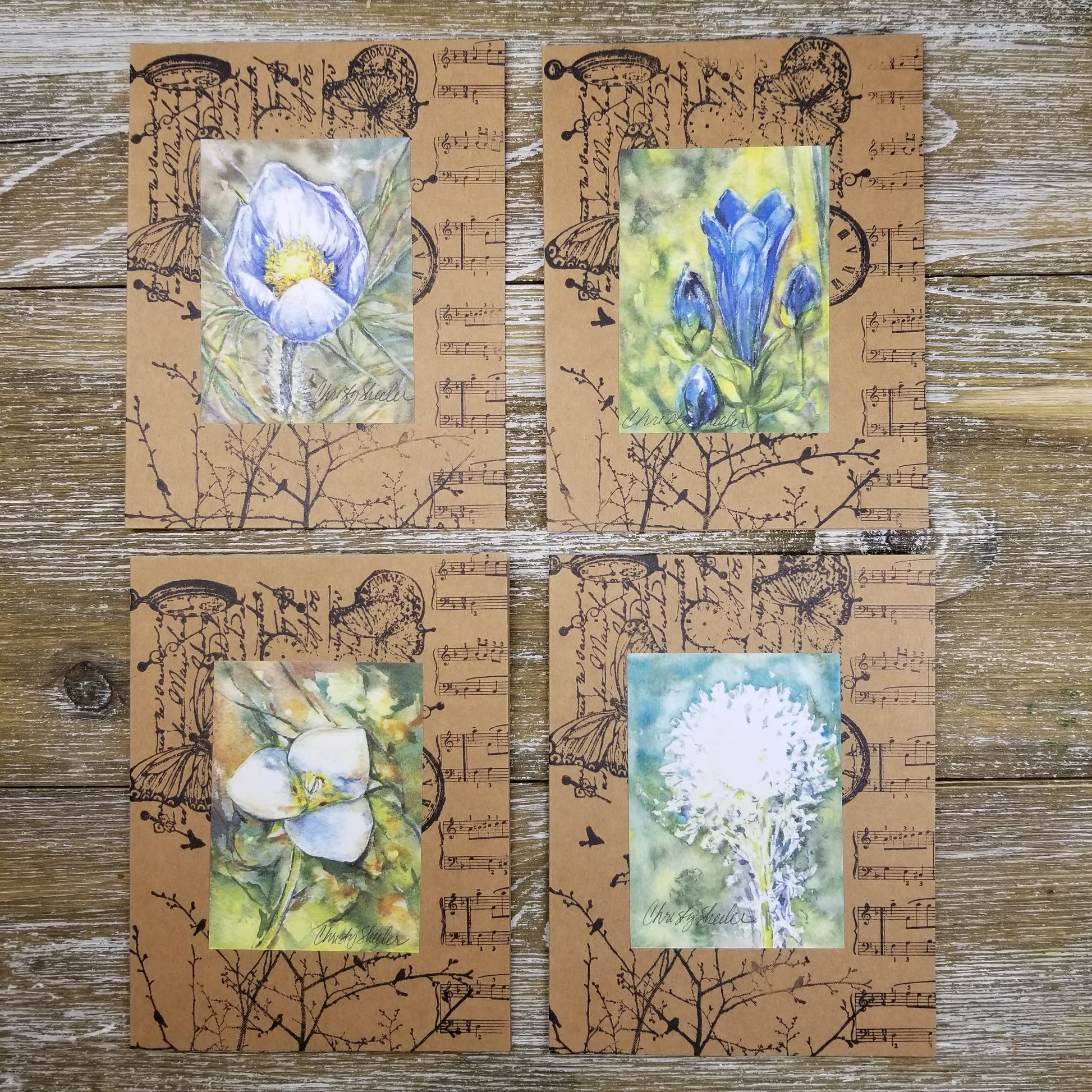 A set of 8 notecards with envelopes. Notecards feature 8 different mini prints of my watercolor wildflowers. Notecards are blank inside. A preview of cards included is enclosed in the back of the package.